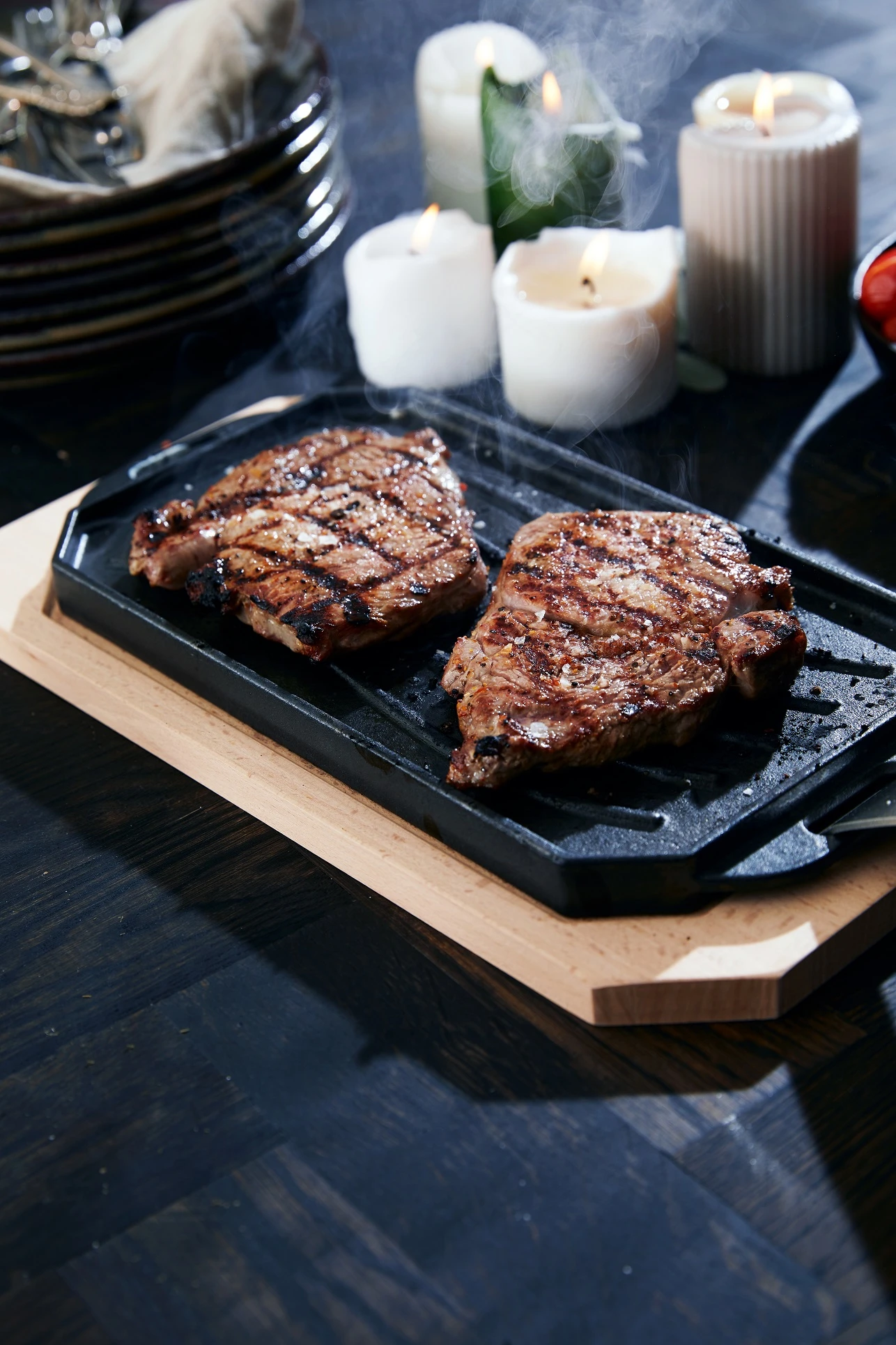 Das Material Gusseisen speichert durch seine hervorragenden Wärmeeigenschaften effizient die Hitze und sorgt zugleich für eine gleichmäßige Wärmeverteilung. Dadurch wird das Grillen von Fleisch, Fisch, Gemüse und sogar Pfannengerichte zu einer mühelosen Aufgabe. Die Gusseisenplatte bietet durch die großzügige Größe von 33×16,5 cm genügend Platz für Ihre Speisen.