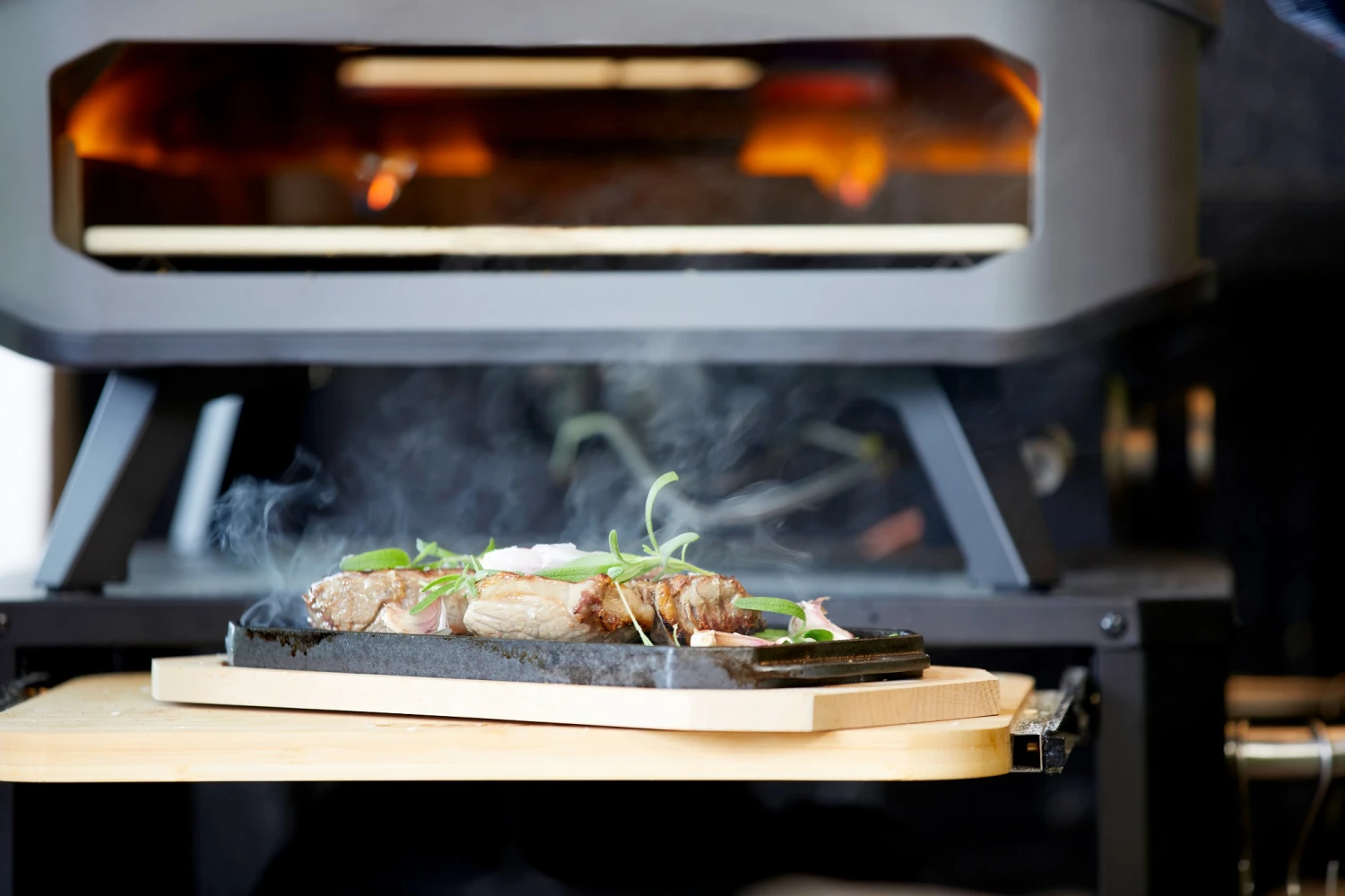 Eine weitere praktische Funktion der Cozze Gusseisenpfanne ist der abnehmbare Griff. Das hat den Vorteil, dass die Gusseisenplatte vielseitig verwendet werden kann, je nach Vorlieben und Anforderungen. Die gegrillten Speisen auf der Guss Platte können dann auf dem dazugehörigen Bambusbrett serviert und präsentiert werden. Beide Teile lassen sich anschließend leicht reinigen.