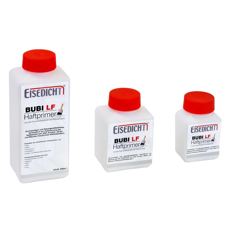 BUBI LF Haftgrund ist in drei Flaschengrößen (125, 250, 500 ml) verfügbar.