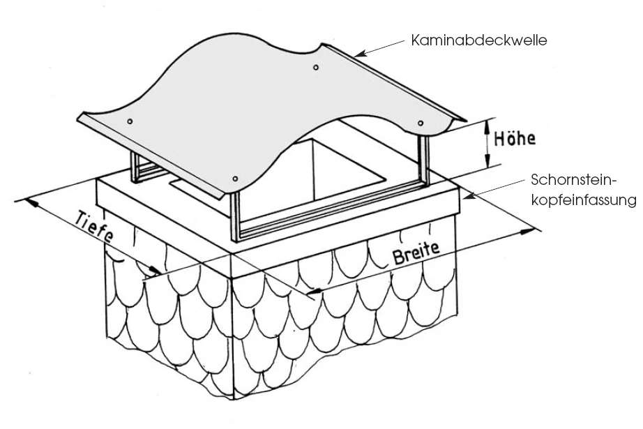 Aus Kupfer in der Materialstärke 1,0 mm in verschiedenen Kopfmaßen zur Abdeckung von Schornsteinschächten.