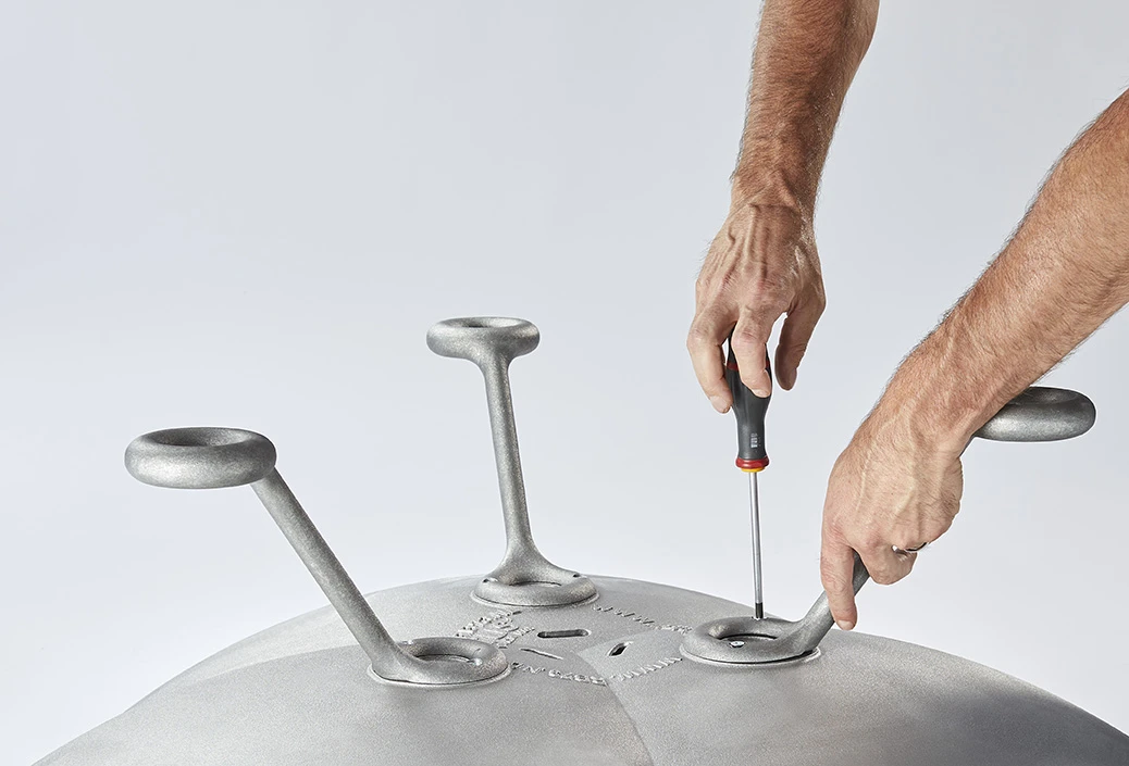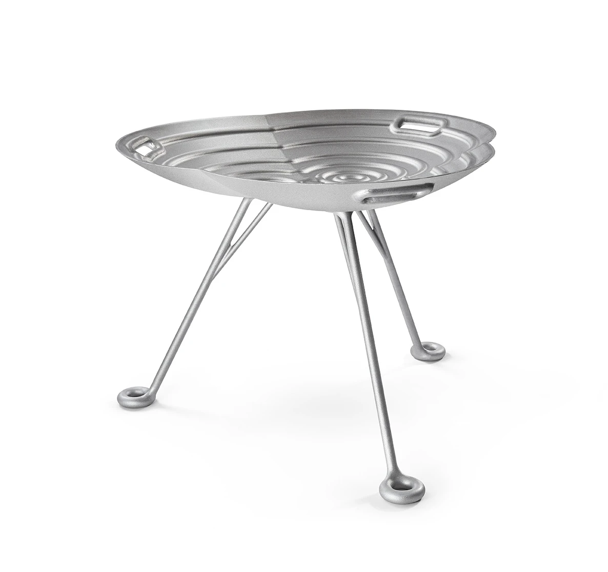 Lotus hat eine dreimal wiederholte Grundform mit einem Gesamtdurchmesser von 100 cm. Die Funktion der Feuerschale erkennt man sofort an der Einfachheit des Designs. Entworfen vom berühmten Dutch Designer Roderick Vos. Vos hasst intellektuelle Geschichten über einfache Produkten. Vos: „Der Lotus ist einfach eine schöne große schale, in wo man ein schönes Feuer legen kann“. Die „Grate“ an der Innenseite sorgen dafür, dass die Holzstämme nicht verrutschen. Auch ohne Feuer ist Lotus ein schönes Dekorationsobjekt für den Garten. Lotus ist in einer hohen und einer niedrigen Version (mit abnehmbaren Beinen) aus gestrahltem, unbehandeltem Aluminium erhältlich.