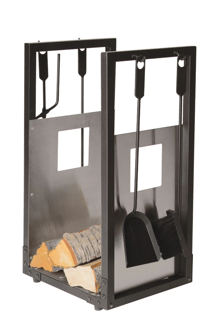 Bestehend aus: Ständer, Kaminschaufel, Kaminbesen, Kaminzange, Schürhaken