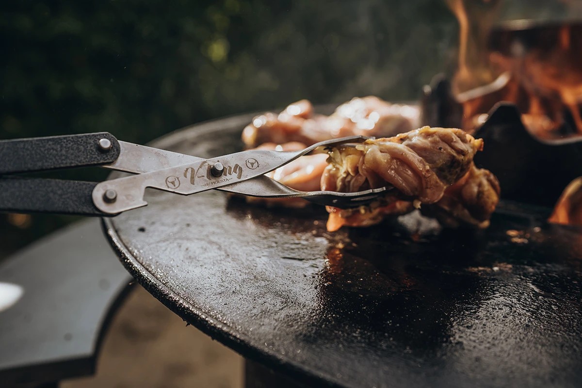 Die V-Tong Grillzange von MOESTA BBQ ist sehr gut geeignet, um schweres Grillgut zu heben und zu drehen. Aber auch Würstchen lassen sich mit ihr gut wenden. Das besondere an der Grillzange ist die hochwertige Fertigung durch eine Kombination aus robustem Edelstahl für den Zange, pulverbeschichtetem Aluminium und edlem Hartholz für den Griff. Der lange Griff schützt vor den Temperaturen in der Küche und am Grill. Anwendbar auch in der Küche oder für Kohle.