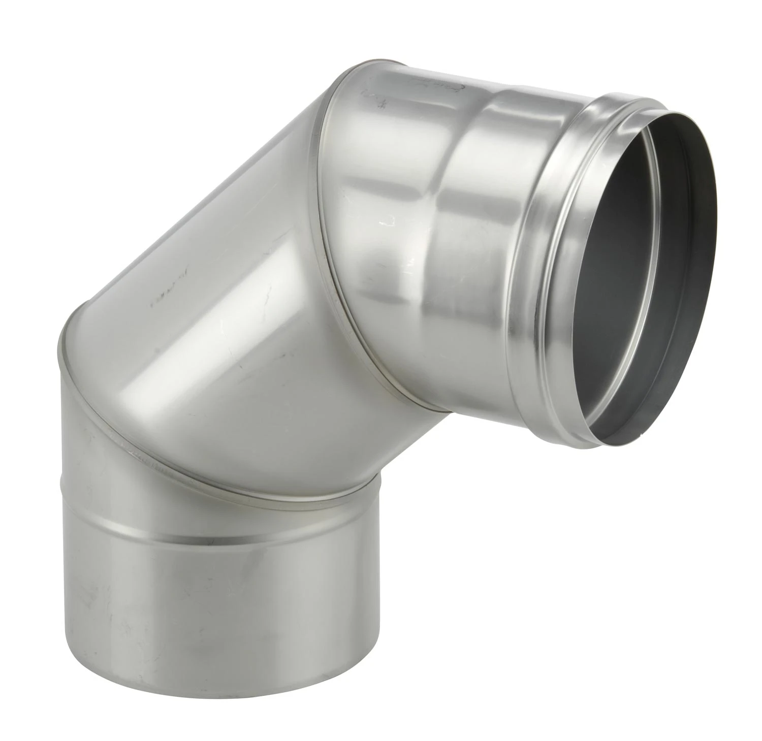 Einwandiger Schornstein Winkel in wählbaren Querschnitten 80 – 400 mm aus hochwertigen V4A Edelstahl in der Materialstärke: 0,6 mm (1,0 mm auf Anfrage) zum Einbau in Schornstein-Verbindungsleitungen.