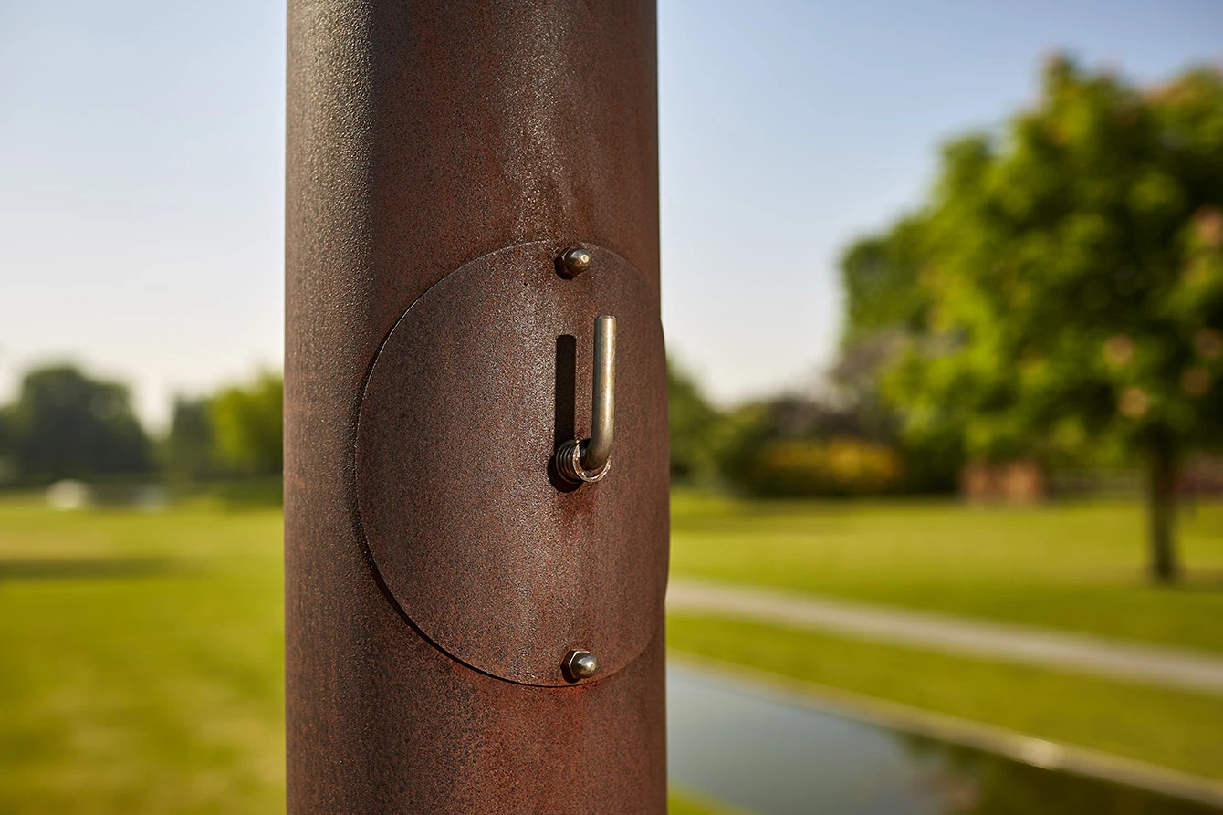 Artikel wird in stahlgrau ausgeliefert und entwickelt nach einigen Wochen eine besondere Rostpatina, die den Stahl vor der Durchrostung schützt.